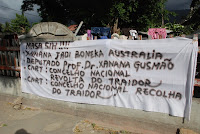 Faço minhas as palavras dos deslocados dos campos de Díli: «Xanana é revolucionário, mas com cérebro de John Howard e G.W.Bush», «Stop!!! Konsep Perang» «Deputado Xanana tem que responsabilizar-se pela crise entre "lorosae" e "loromonu"» «Os traidores não merecem governar» «Queremos justiça para os autores dos crimes de 2006» «Não concordamos que o Presidente da República inclua Xanana Gusmão como primeiro-ministro» «Os deslocados não têm dignidade a viver debaixo de um toldo no seu próprio país». "CNRT = Conselho Nacional da Revolta do Traidor» «CNRT = Conselho Nacional da Recolha do Traidor» «Traidor uma vez, traidor sempre» Os «objectivos» da AMP são como «salvar os autonomistas, pisar o povo maubere, sobretudo o mais miúdo, alcançar uma nação capitalista e dar liberdade aos autores da crise» «O filho do povo maubere precisa de um primeiro-ministro e não de uma pessoa choramingas como o irmão grande Xis»